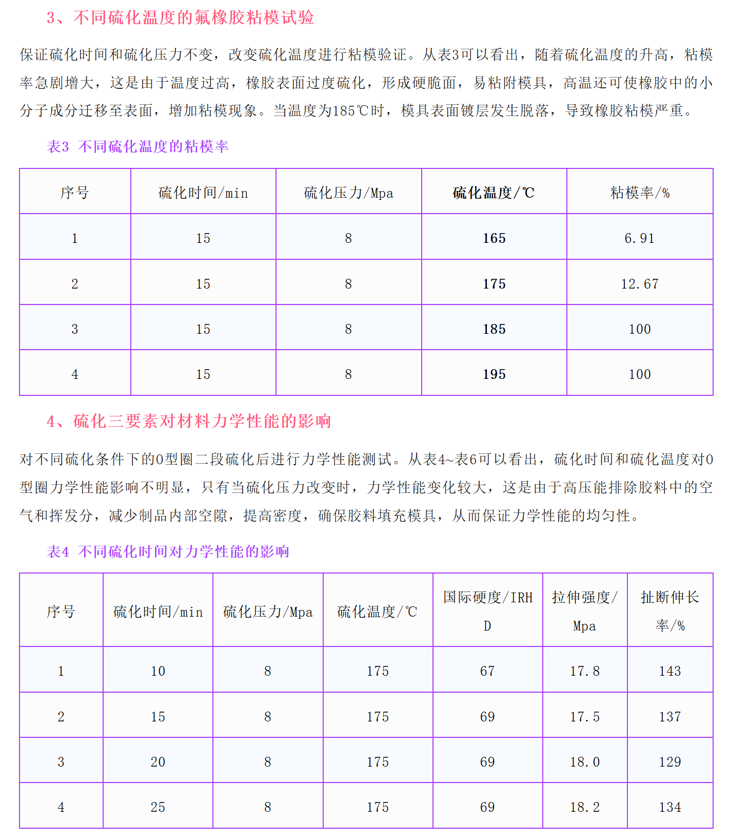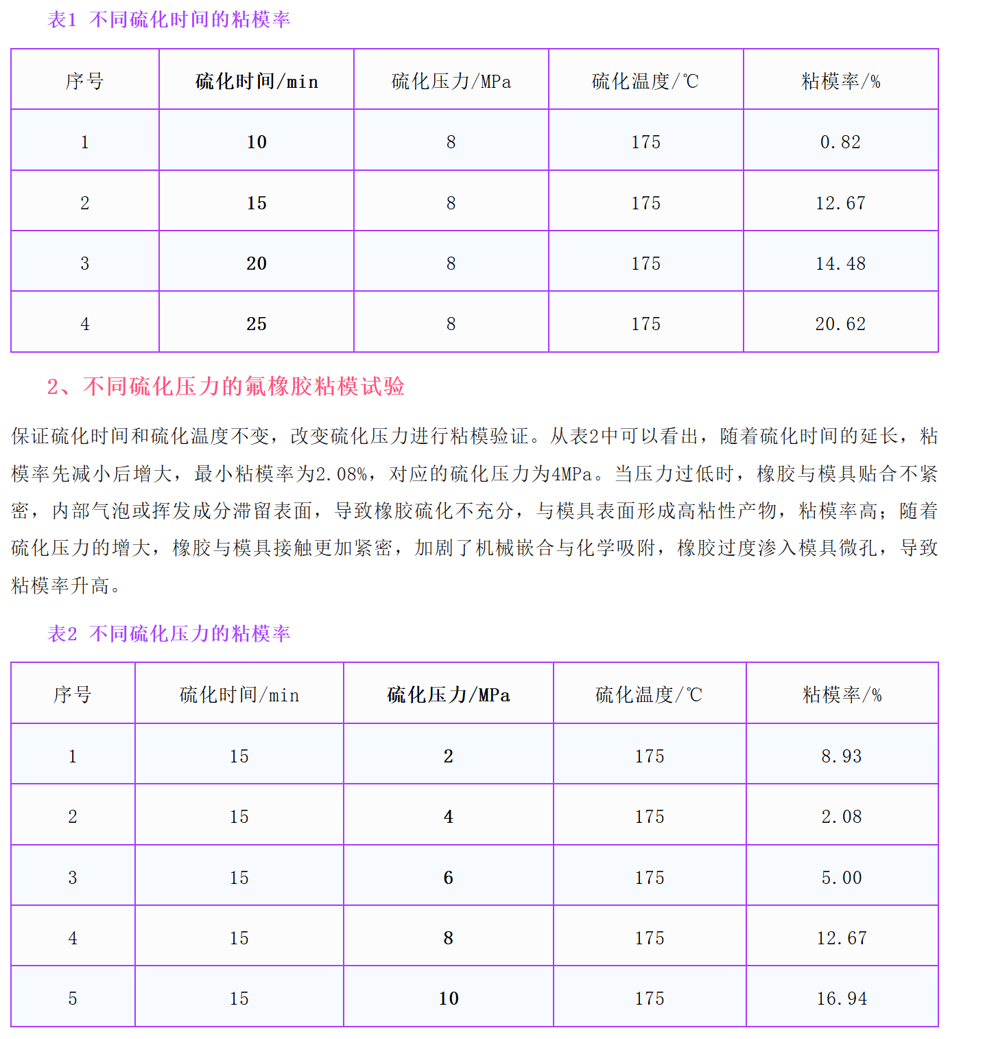 1、不同硫化时间的氟橡胶粘模试验