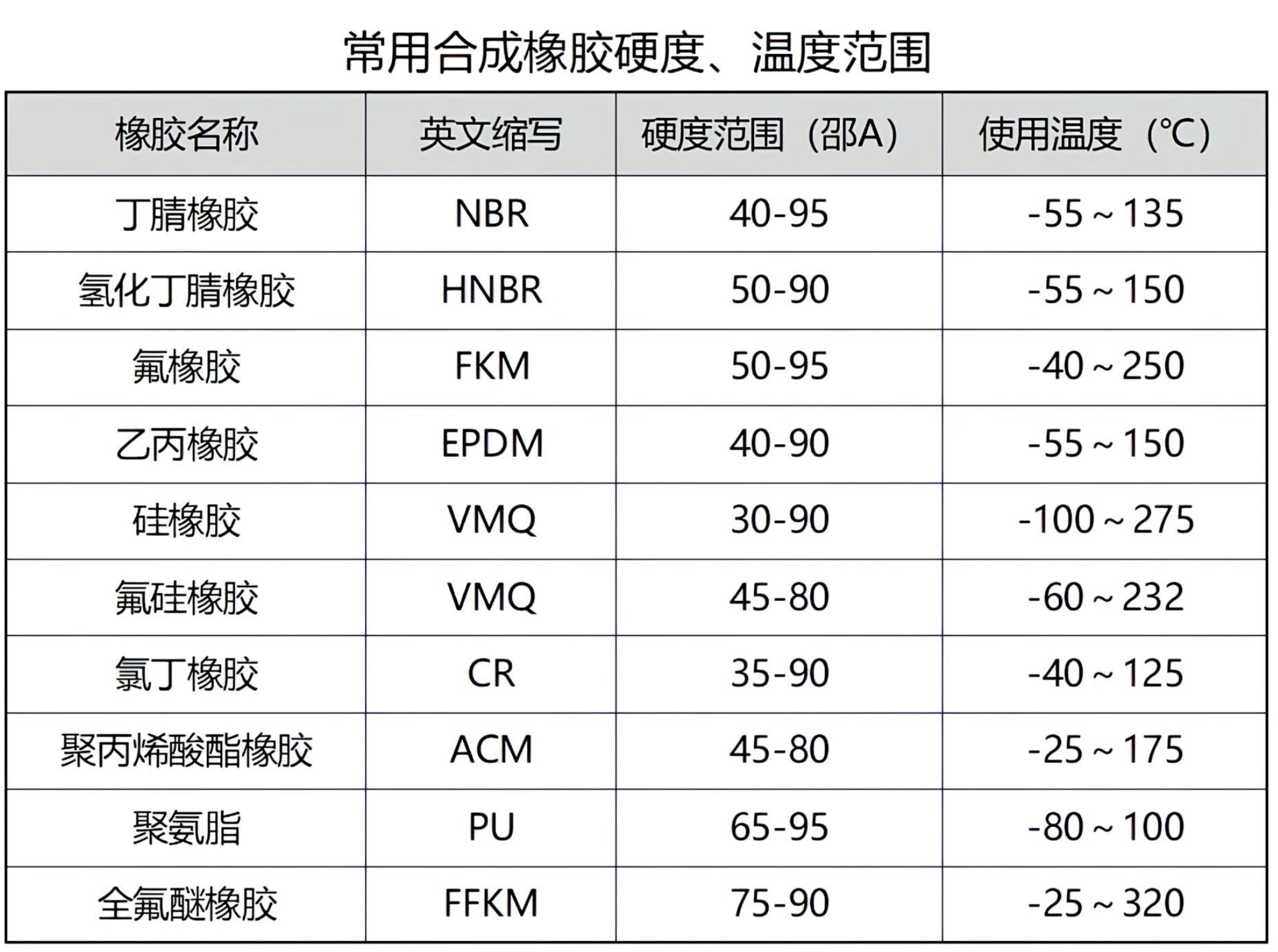 常总合成橡胶硬度、温度范围