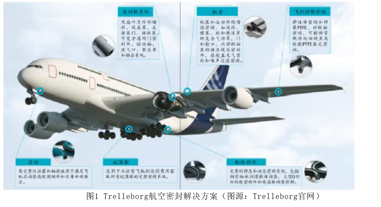 图1为Trelleborg在航空领域的密封解决方案。本文仅对航空发动机密封系统进行市场研究分析。